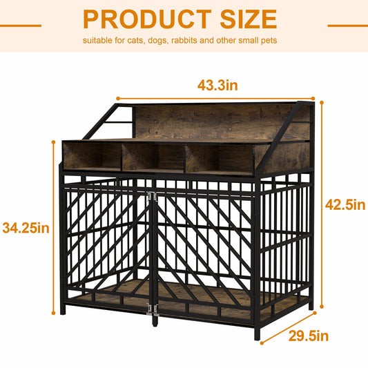 Wooden Dog Crate Furniture With Divider And Storage Drawers For Large Dogs - Rustic Brown