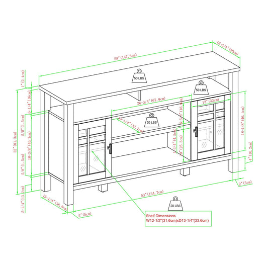 2 Door Sideboard With Windowpane Design - Ivory Oak