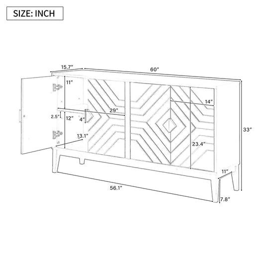 4 Door Sideboard Storage Cabinet With Door Shelf