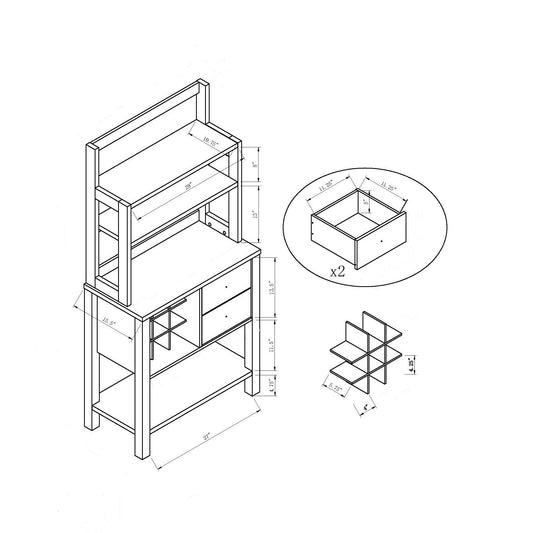 Bakers Cabinet With Three Display Shelves, Wine Compartment & Two Drawers - Red Cocoa