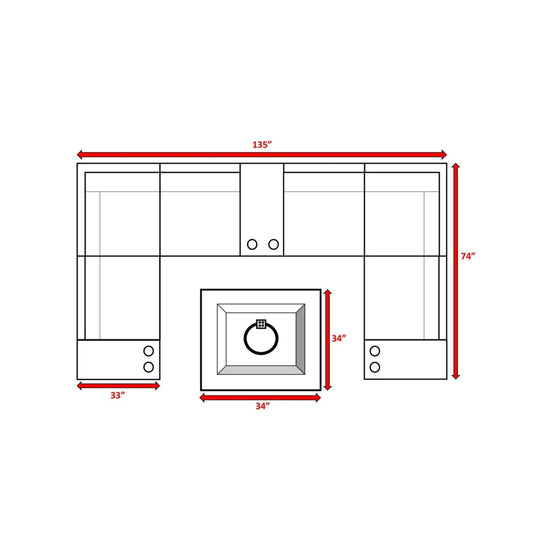 All Weather 4 Person Patio Sofa Set With Fire Pit And Side Table Rustproof - Brown