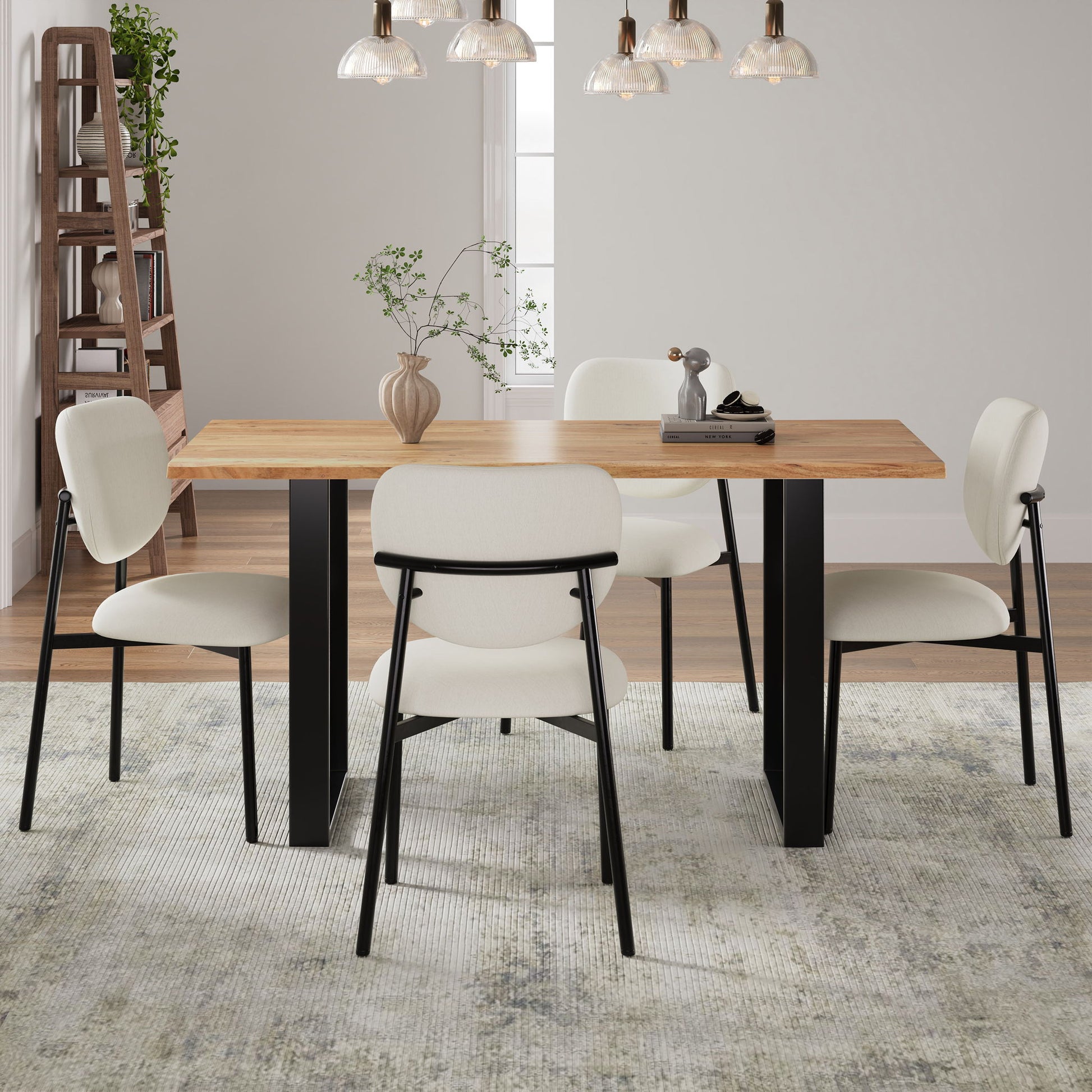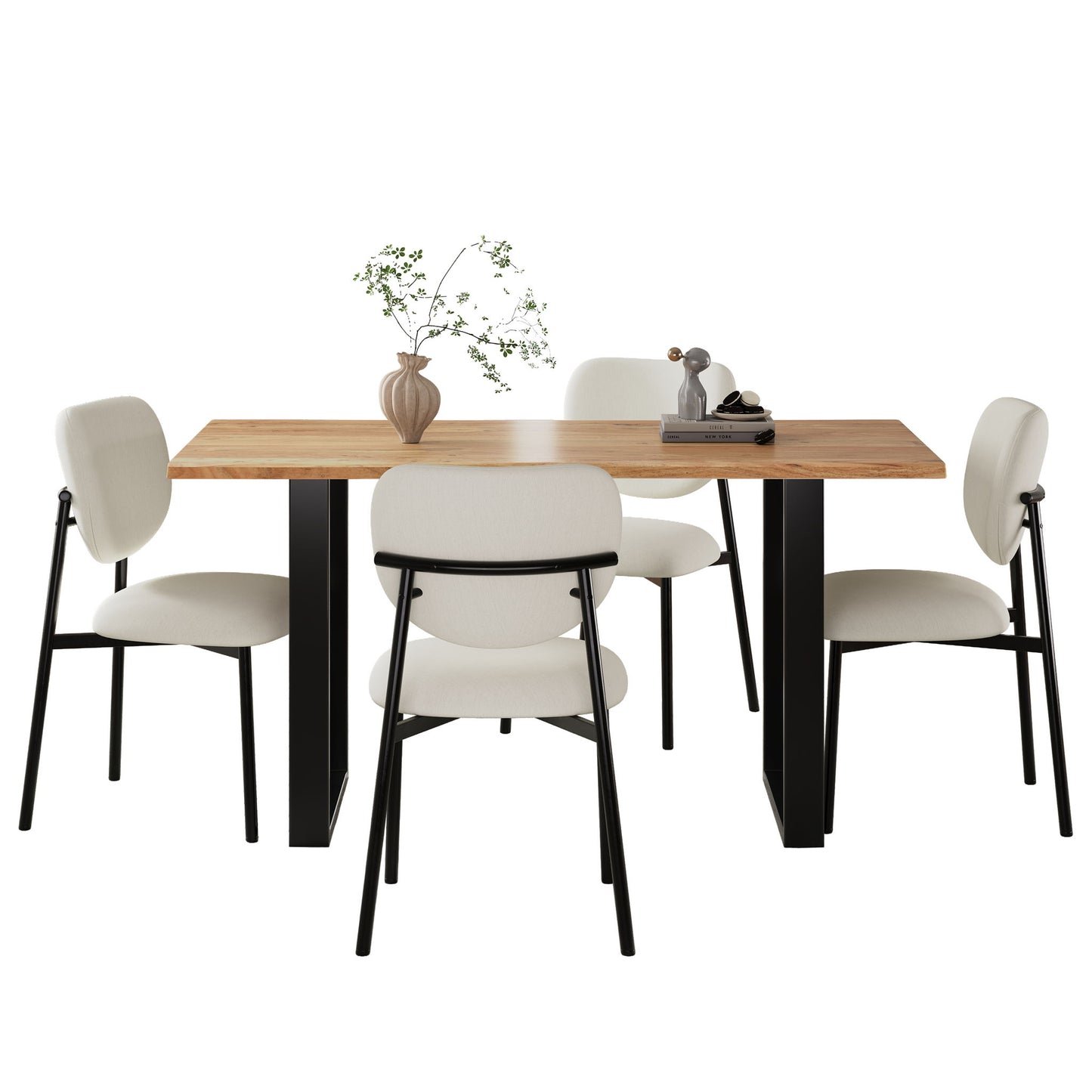 Mid Century 5 Piece Dining Set With Upholstered Dining Chairs And Metal Legs, Solid Wood Top Metal Base Dining Table - Beige / Black