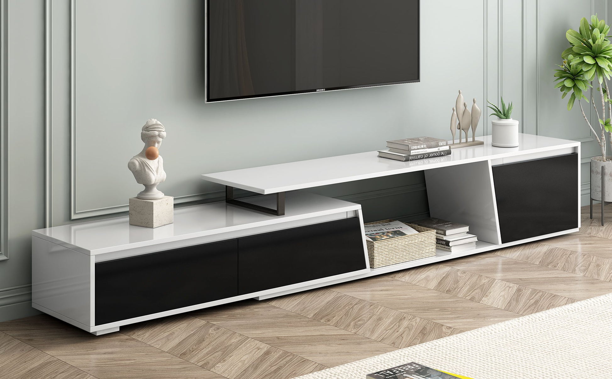 Minimalist Rectangle Extendable TV Cabinet With 2 Drawers And 1 Cabinet