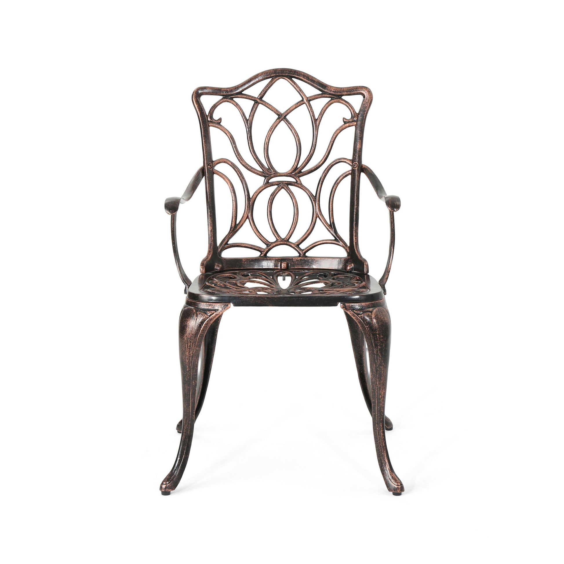 Outdoor Dining Chair With Floral Design And Curved Saber Legs (Set of 2) - Copper