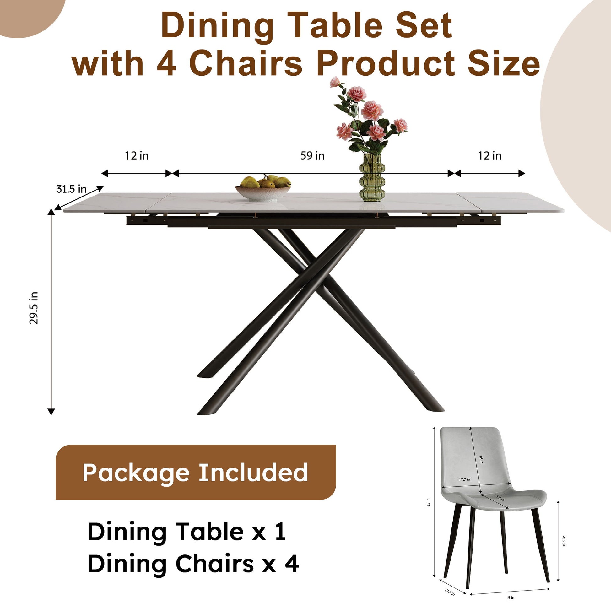 Retractable Sintered Stone Dining Table Set With Chairs