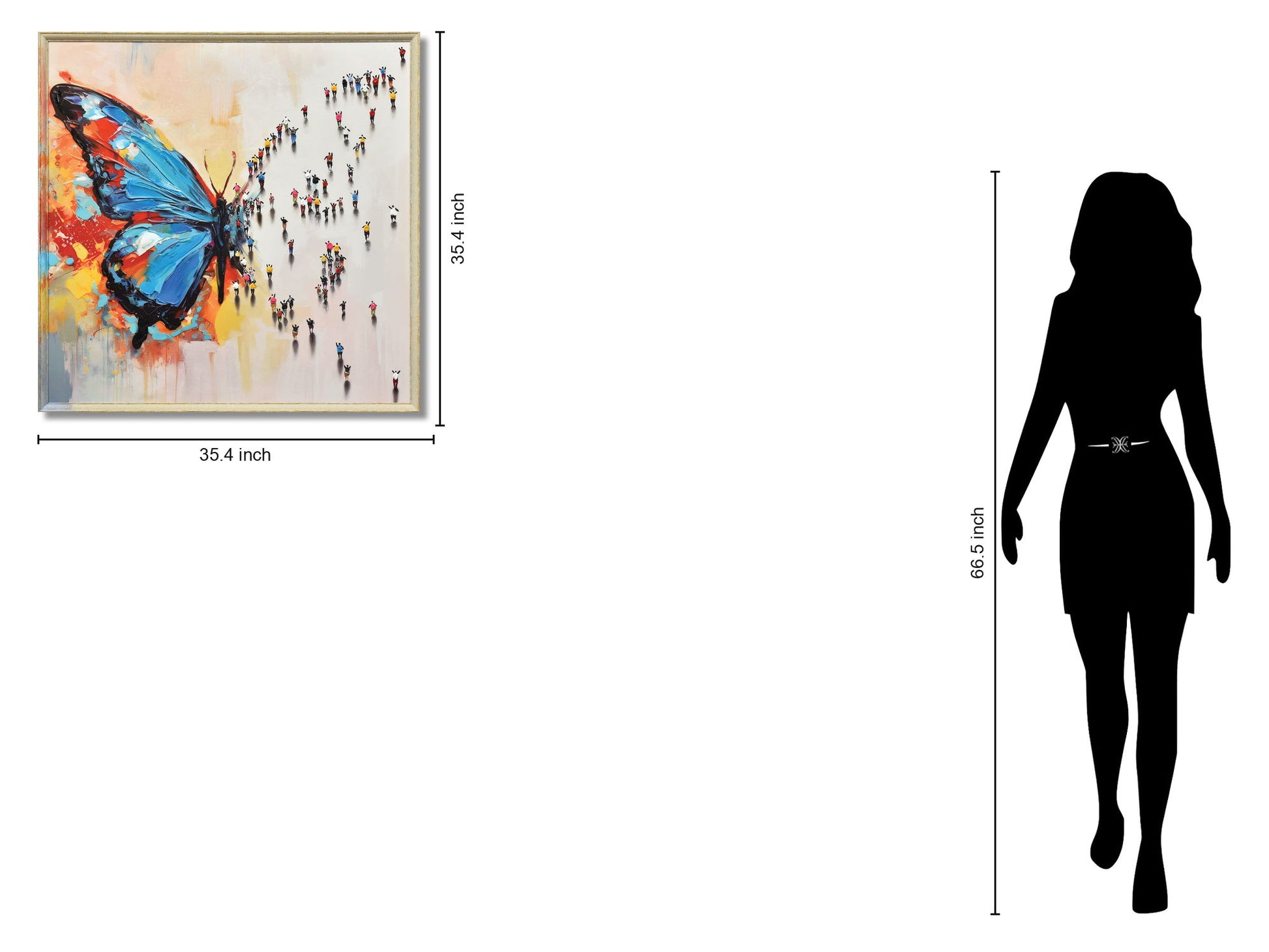 Experience the vibrant energy of transformation with "Monarch Metamorphosis Parade," a hand-painted mixed media canvas that captures the dynamic journey of change. This contemporary piece features a striking blue monarch butterfly emerging amidst a parade of colorful, figurative forms, each hand-applied with textured accents that bring depth and uniqueness to the artwork. Ready to display with a beige frame that complements its lively palette, this piece brings life and inspiration to living rooms, offices, or bedrooms. Beyond its artistic appeal, each purchase supports a meaningful cause by donating a meal to a hungry American child, making this artwork a beautiful addition to your space and your heart.