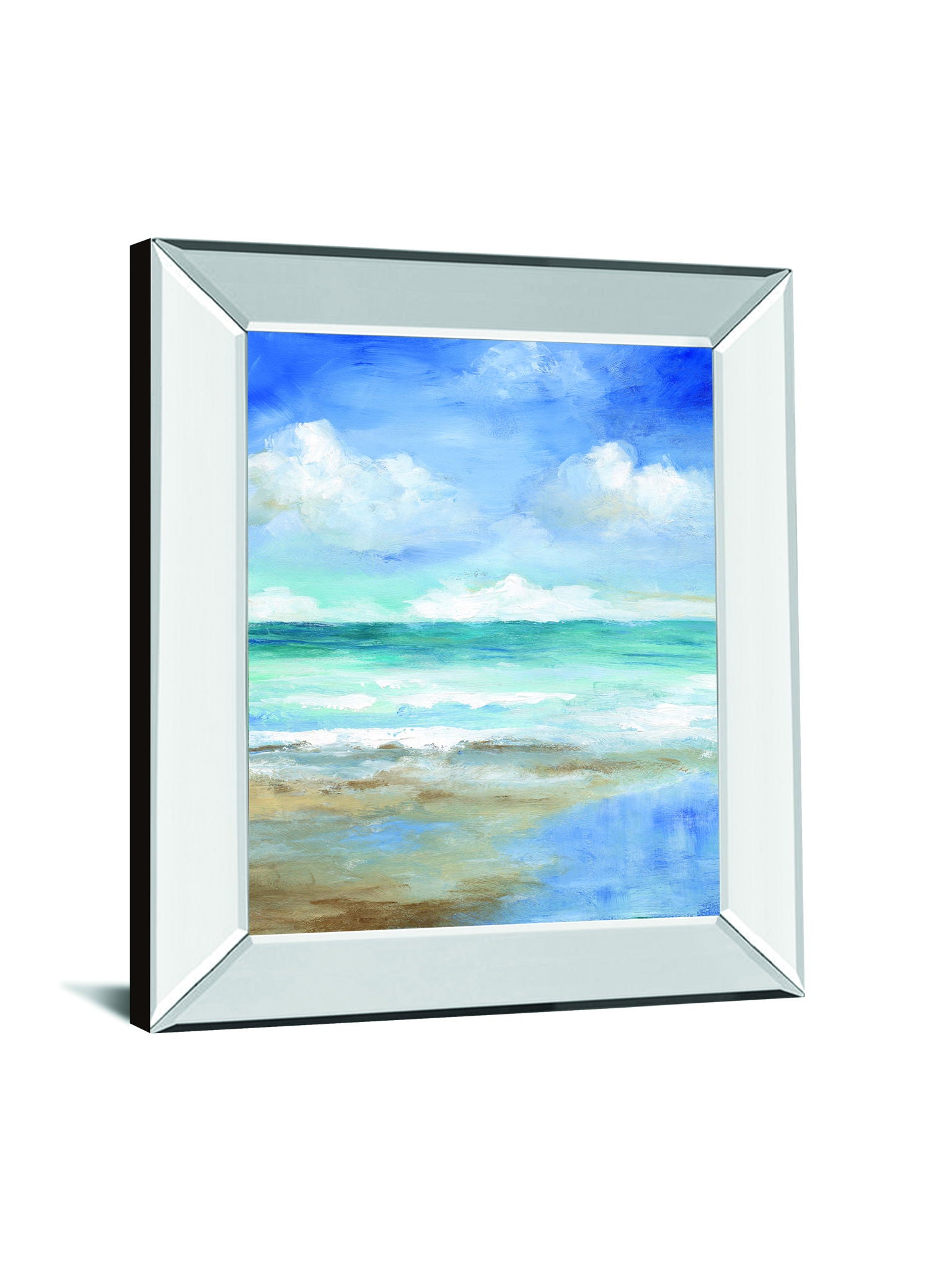 Step into a peaceful coastal escape with this captivating artwork that brings the ocean's gentle rhythm and soothing colors into your home. The vibrant blues and soft sandy hues blend seamlessly, evoking the serene beauty of waves meeting the shore under a bright sky. Encased in a sleek mirrored frame, this piece reflects light and adds a modern touch, making it a perfect addition to living rooms, bedrooms, or bathrooms. Crafted with premium materials and ready to hang, it transforms any space into a tranquil retreat filled with the calming essence of the sea.