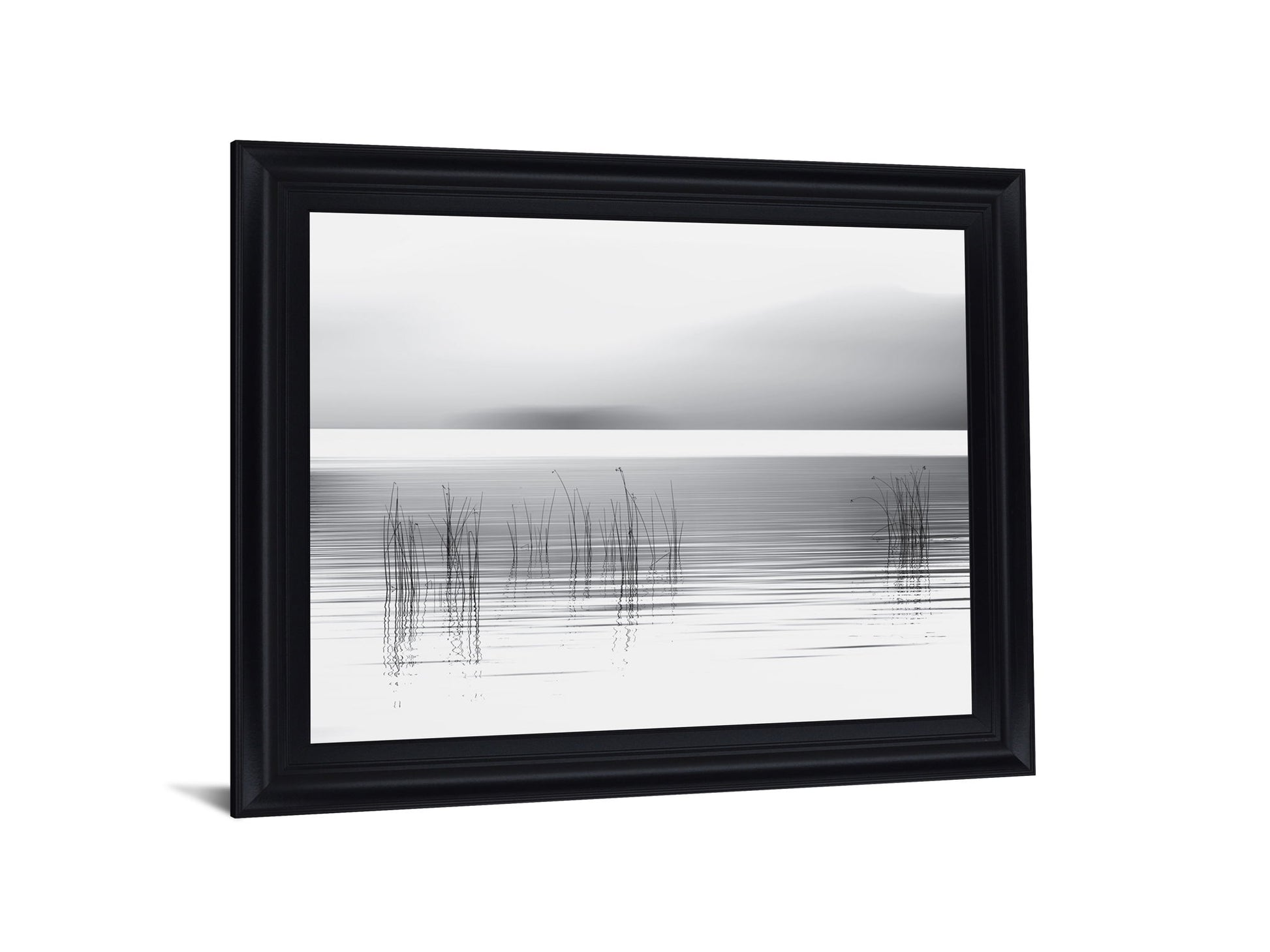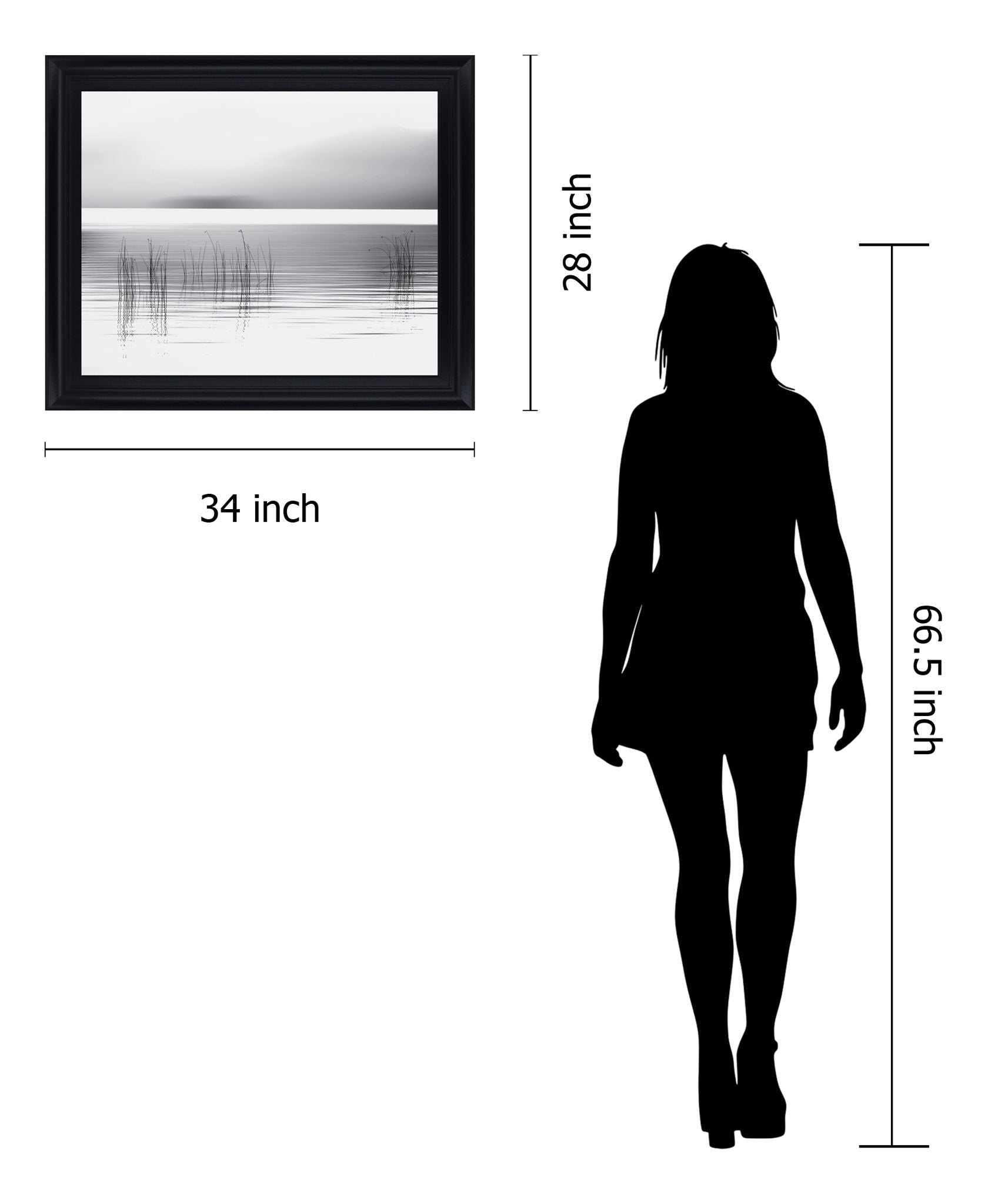 Tranquil Dawn invites you into a serene morning scene where delicate reeds emerge from calm waters under a soft, misty sky. This contemporary photographic art piece, framed in a sleek midnight aura finish, captures the subtle interplay of light and shadow in monochrome tones. Perfect for living rooms or office spaces, it brings a peaceful ambiance that encourages quiet reflection and a moment of stillness amidst a busy day.