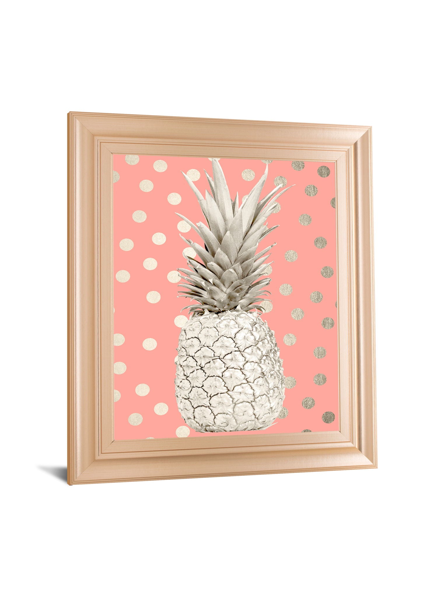 White Gold Pineapple On Polka Dots Pink By Nature Magick - Framed Print Wall Art - Gold